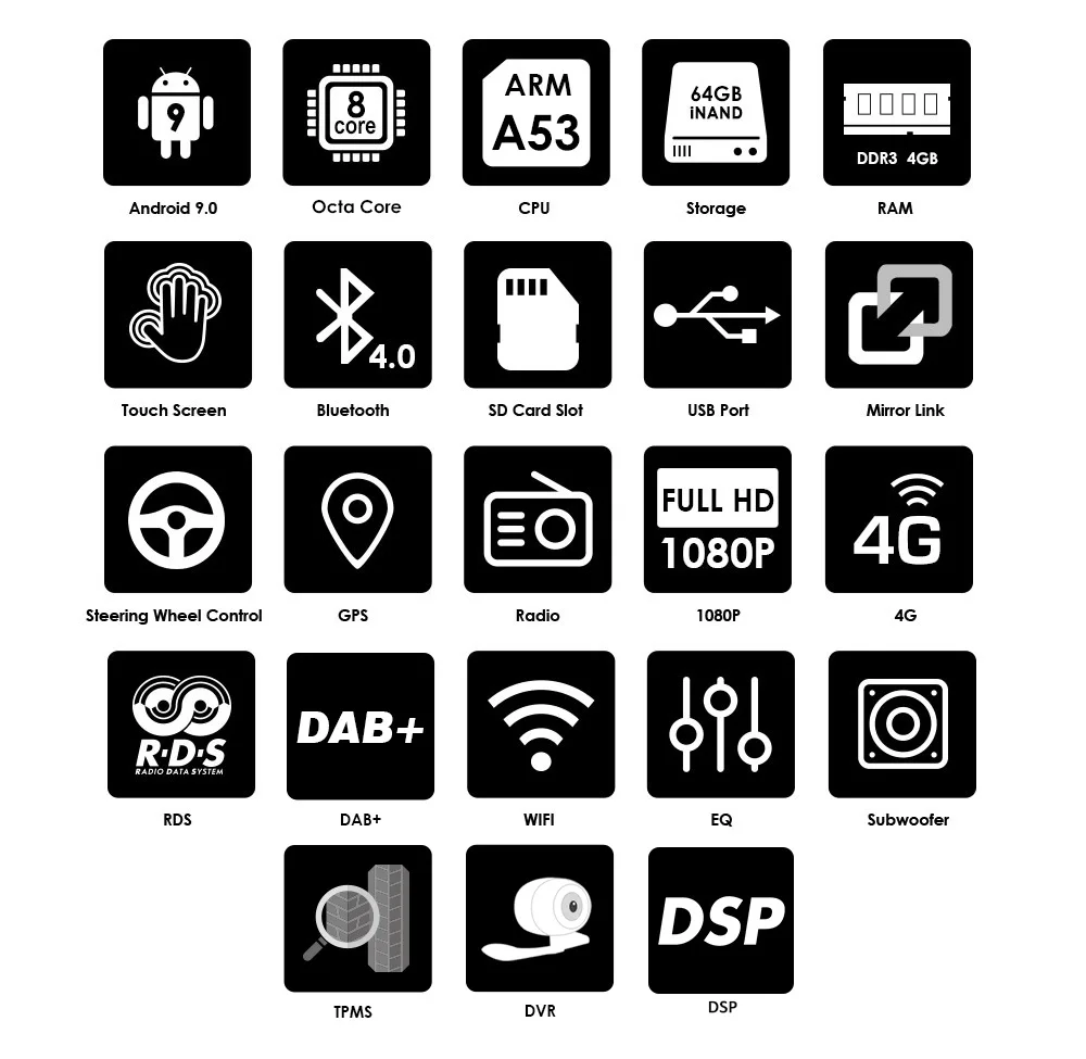2DIN 7''HD Android 9.0 8Octa Core 4G RAM 64G ROM PX5 Universal Car Radio Stereo Multimedia Player GPS Map Steering Wheel DAB DTV